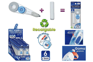 En cualquier estuche escolar, en toda mesa de trabajo como es debido, hay dos artículos que no pueden faltar jamás: La cinta correctora retráctil y la goma de borrar clásica. Hasta hoy se trataba de productos separados, pero una novedad de la marca Office box las ha unificado. Se trata de DUO Corrector + Goma, un artículo completamente nuevo que incorpora la cinta correctora retráctil en la parte inferior y la goma de borrar con mecanismo giratorio ajustable en la parte superior. La cinta es de 6 metros de largo por 5 mm de ancho, mientras que la goma tiene 35 mm de largo y 8 mm de ancho. Está disponible en cuatro colores: Azul, verde, naranja y rosa. Tanto la cinta como la goma cuentan con recambios extraíbles. |